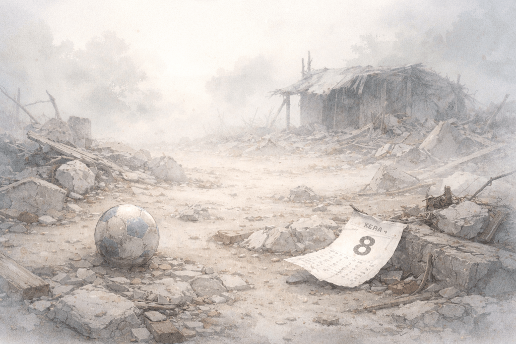 Si allontanano sollevando un po’ di polvere verso lo spazio vuoto tra i calcinacci e cominciano a palleggiare.