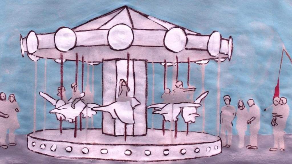 Galoppano alla giostra, acquistano due gettoni e fanno una decina di giri.