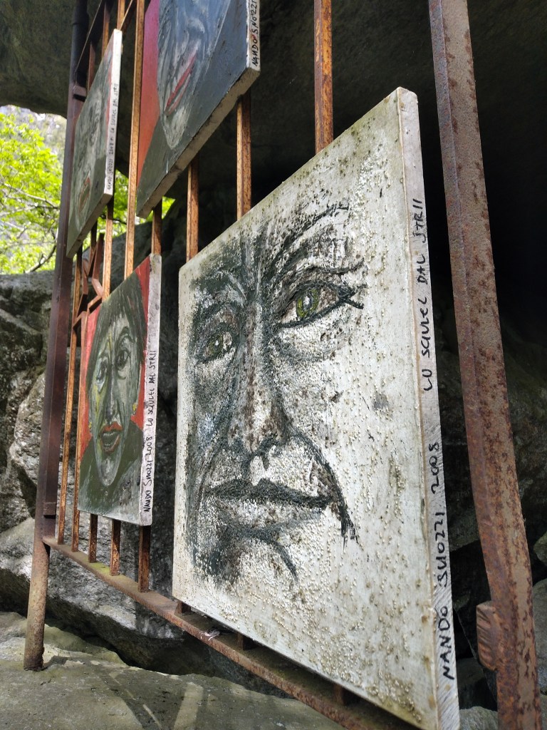U gà den dui becc ‘me ecc sto sass scondù da arbri e corer Om cartell in strada ul segne sto surel di strii colorò dal Nando e curò dal Frank Om quai naar in giir al noto – ag n’é da naar in giir al noto, an vidì an chilé, ai sentii – u l’ha cribiò da colpi, da scondù Ma ‘l Frank ul varda e u fa: l’é fin pisei bel iscì sbogiò